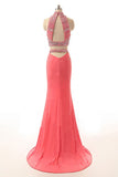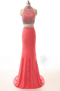 Watermelon Beaded Long Sheath Modest Prom Party Dresses PFP1339