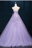 2019 Strapless Long Purple Lace Big Wedding Dress With Bow PFW0298