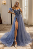 A Line Sweetheart Appliques Lace Sweep Train Tulle Dress PFP2554
