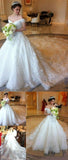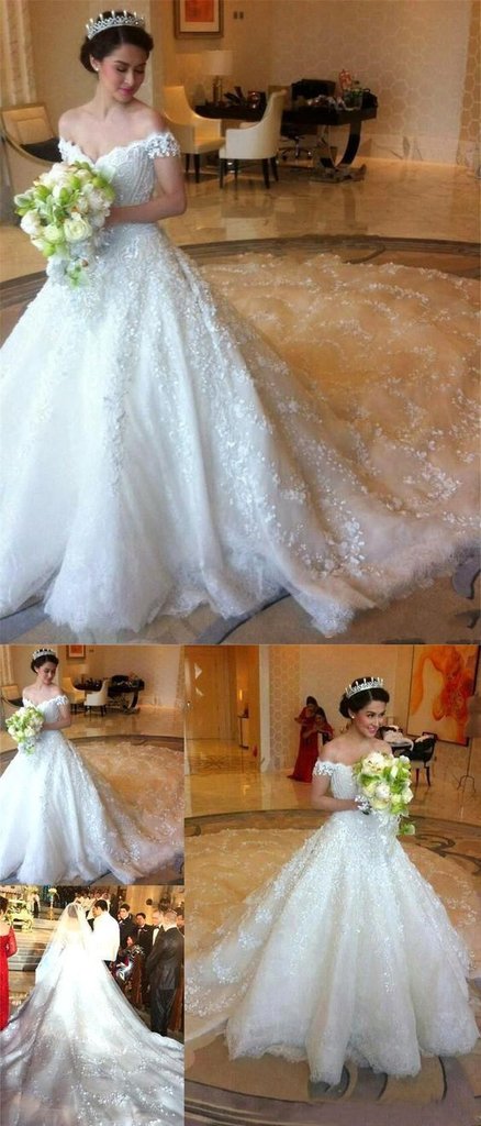 Ball Gown Romantic Long Train Luxury Off the Shoulder Wedding Dresses PFW0036