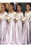 Beautiful A-Line Long Sleeves Pink Bridesmaid Dress with Lace PFB0042
