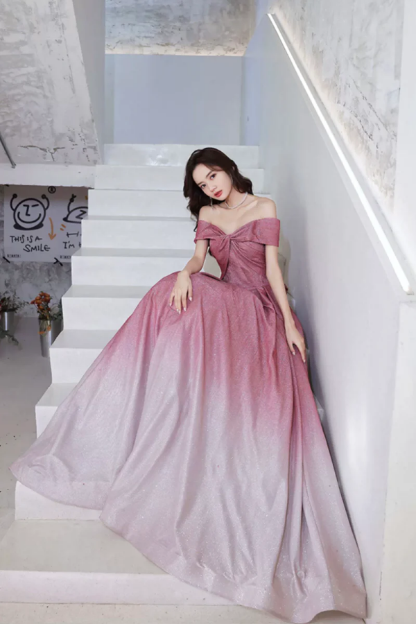 Beautiful Gradient Floor Length A Line Prom Dress, Off the Shoulder Evening Party Dress PFP2520