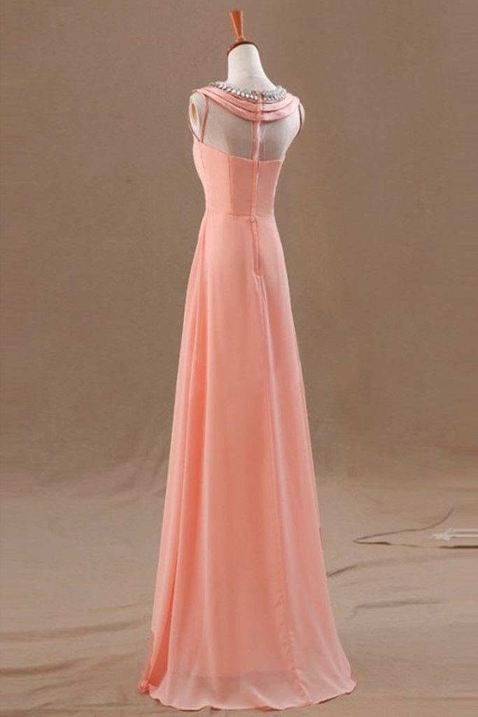 Blush Pink Chiffon Empire Long Prom Evening Dresses PFP1327