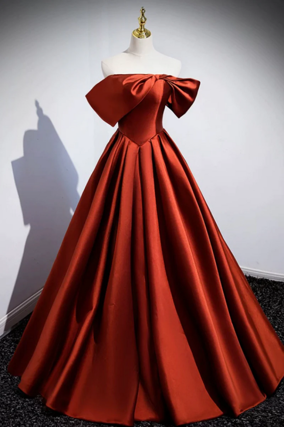 Caramel Floor Length Satin Formal Dress, Cute Off Shoulder A Line Evening Dress PFP2348