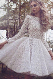 Chic Lace Scoop Long Sleeve Ivory Short Homecoming Dress Prom Party Dress PFH0019