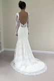 Custom Made Trumpet Mermaid Backless Long Sleeves Lace Wedding Dress PFW0253