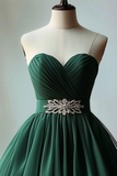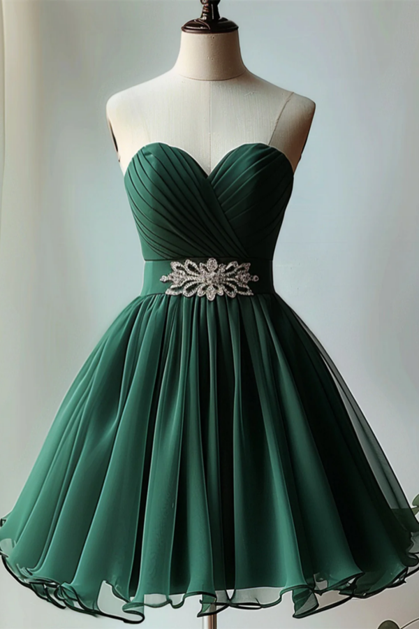 Dark Green Beaded Chiffon Knee Length Party Dress, Green Homecoming Dress PFH0471