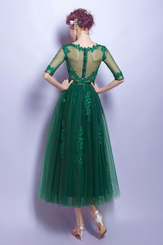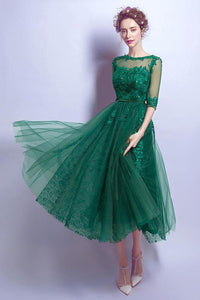 Dark Green Cheap Applique Lace Short Homecoming Dresses With Half Sleeves,Graduation Gowns PFH0134