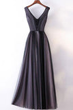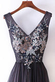 Elegant A-line V-neck Lace Appliqued Lace Up Long Prom Dresses Evening Gowns PFP0230