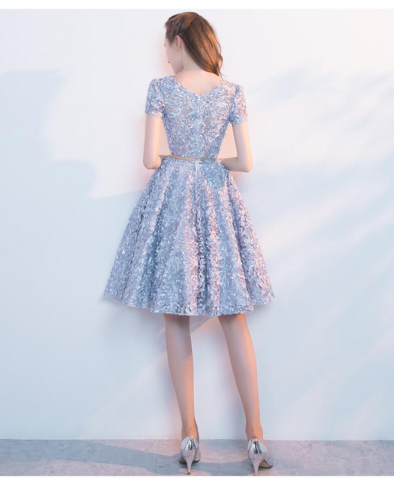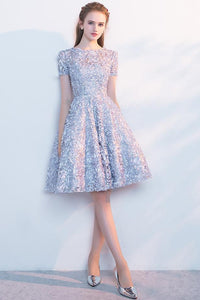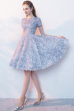 Elegant Lace A Line Short Light Blue Homecoming Dresses PFH0088