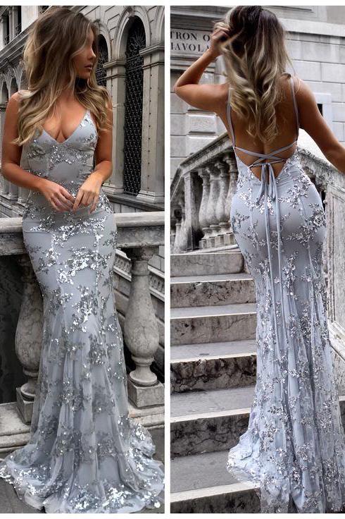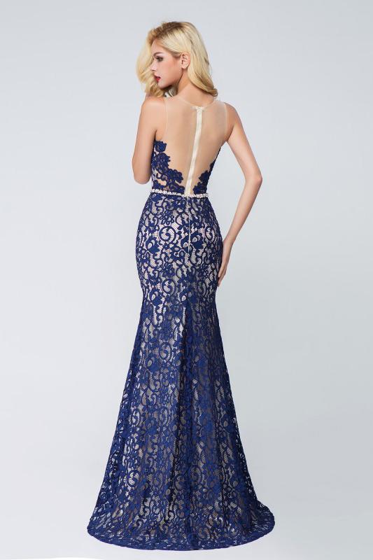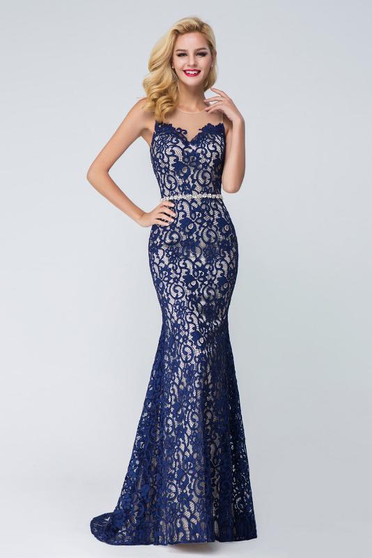 Elegant Mermaid Scoop Sleeveless Blue Lace Long Prom Dresses,Evening Dresses PFP0238