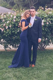 Elegant Navy Blue Off the Shoulder Mermaid Long Prom Dresses PFP0272