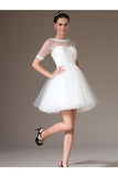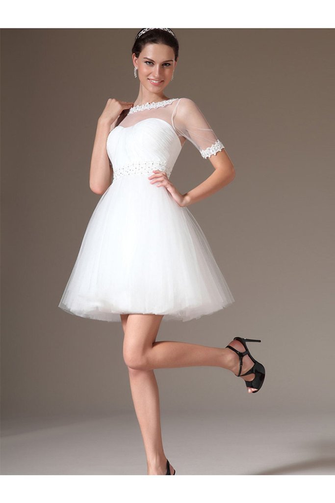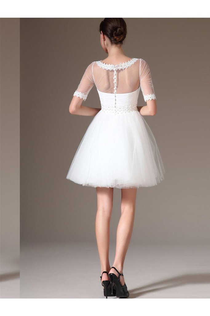 Elegant White Short Sleeves Lace Beading Beach Wedding Dresses PFW0303