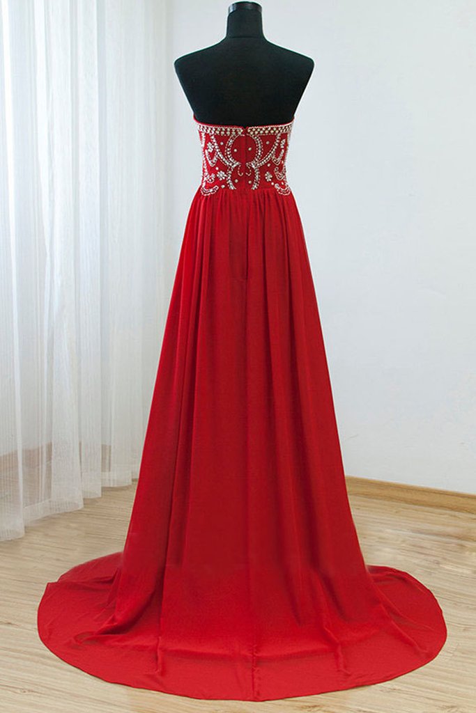 Empire Waist Red Backless Sexy Long Prom Evening Dress PFP1318