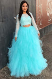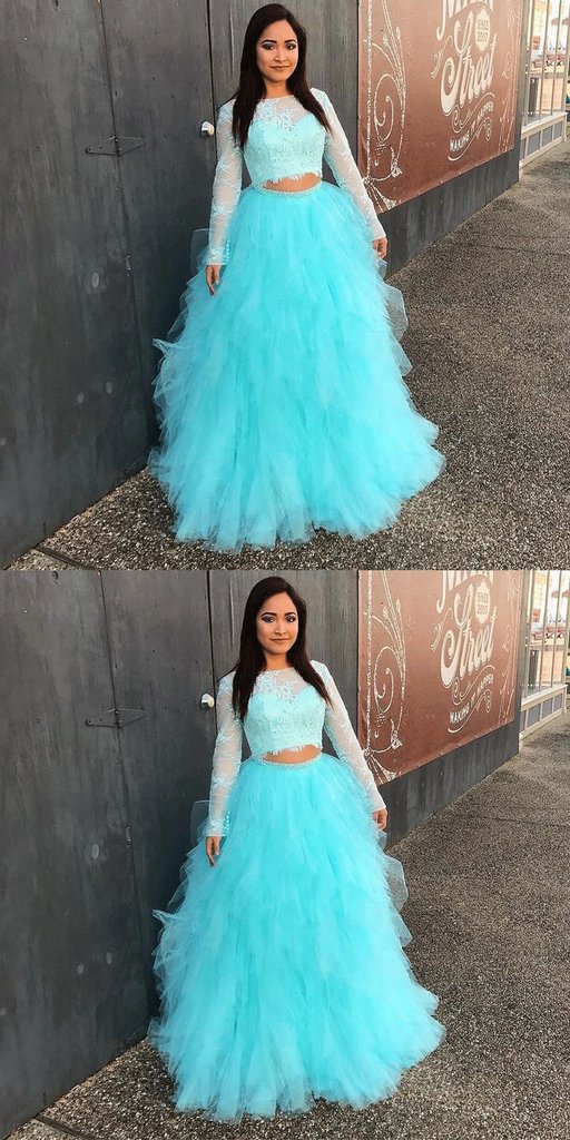 Full Sleeve Evening Dress, Two Piece Tulle Lace Top Prom Dress, Elegant Formal Dress PFP0118