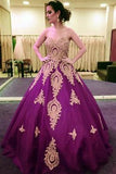 Gold Lace Appliques Sweetheart Ball Gown Prom Dress Sweet 16 Dress Quinceanera Dresses PFP0606