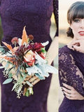 Gorgeous Half Sleeves Mermaid Long Purple Lace Open Back Bridesmaid Dress PFP0888