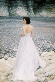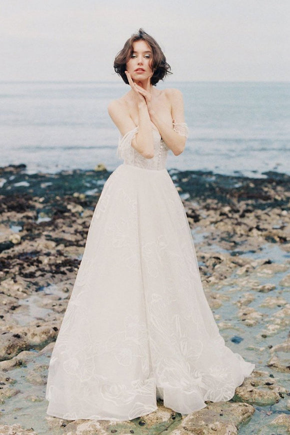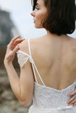 Ivory Long Lace Spaghetti Straps Sweep/Brush Train Beach Wedding Dress Bridal Gown PFW0109