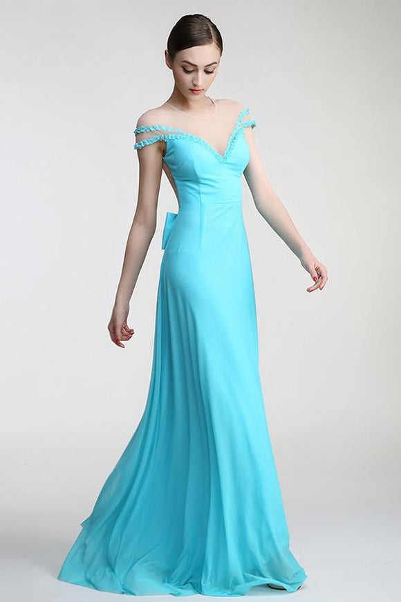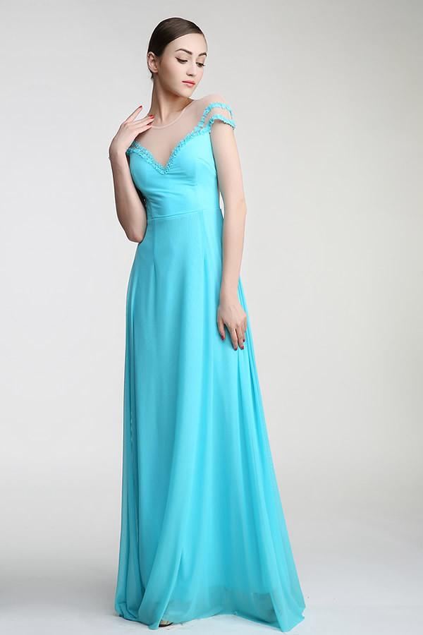 Light Sky Blue Long Deep V-neck Prom Party Dresses PFP1300