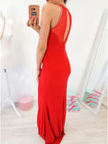 Mermaid Crew Open Back Floor-Length Red Prom Dress with Keyhole PFP1631