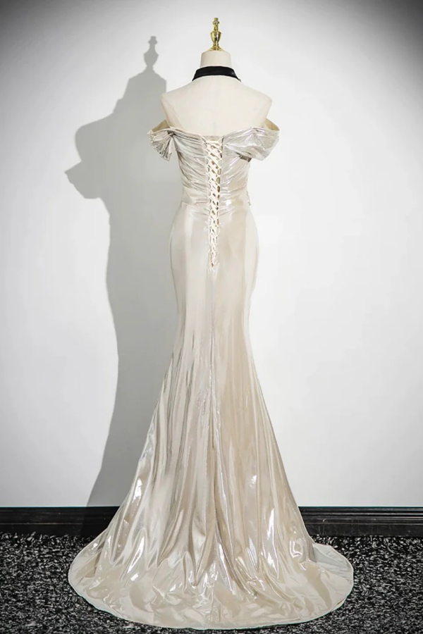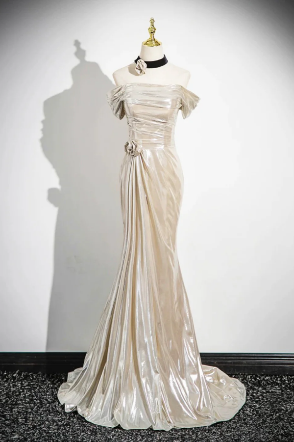 Mermaid Off the Shoulder Party Dress, Beautiful Champagne Evening Party Dress PFP2736