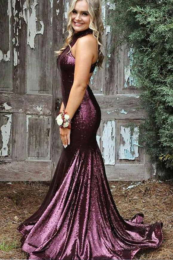 Mermaid Purple Sequin Evening Dresses ,Cheap Mermaid Prom Dresses PFP0664