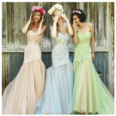 Mermaid Sweetheart Tulle Bridesmaid Dresses,Long Lace Fashion Prom Dresses PFB0043