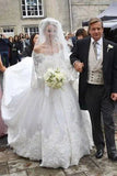 Off the Shoulder Long Sleeves Wedding Dresses With Cathedral Train PFW0400
