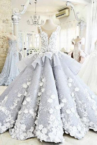 Pretty Ball Gown Flowers Long Quinceanera Dress,Backless Princess Formal Dress Wedding /Prom PFP0926