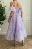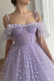 Promfast A line Off the shoulder Tea Length Prom Dress Applique Homecoming Dress PFP2229