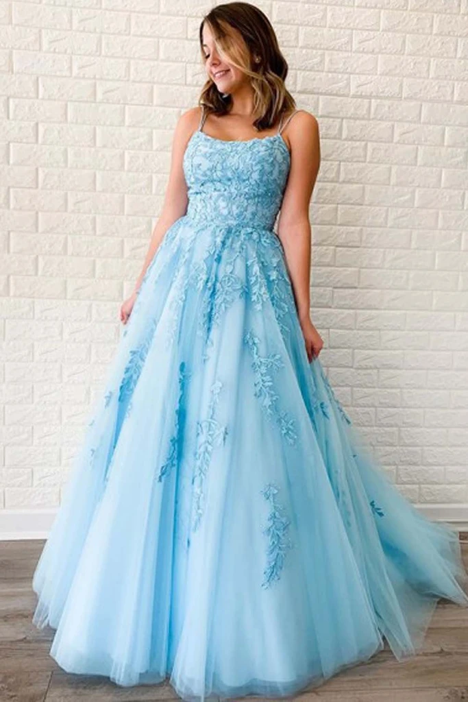 Promfast A-Line Round Neck Yellow Tulle Lace Prom Dresses Formal Dresses PFP1916