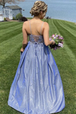 Promfast A Line Spaghetti Straps Blue Lace Top Prom Dresses, Long Formal Evening Dresses PFP2084