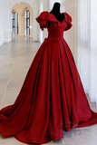 Promfast Burgundy Off Shoulder Satin Long Prom Evening Dress PFP2251