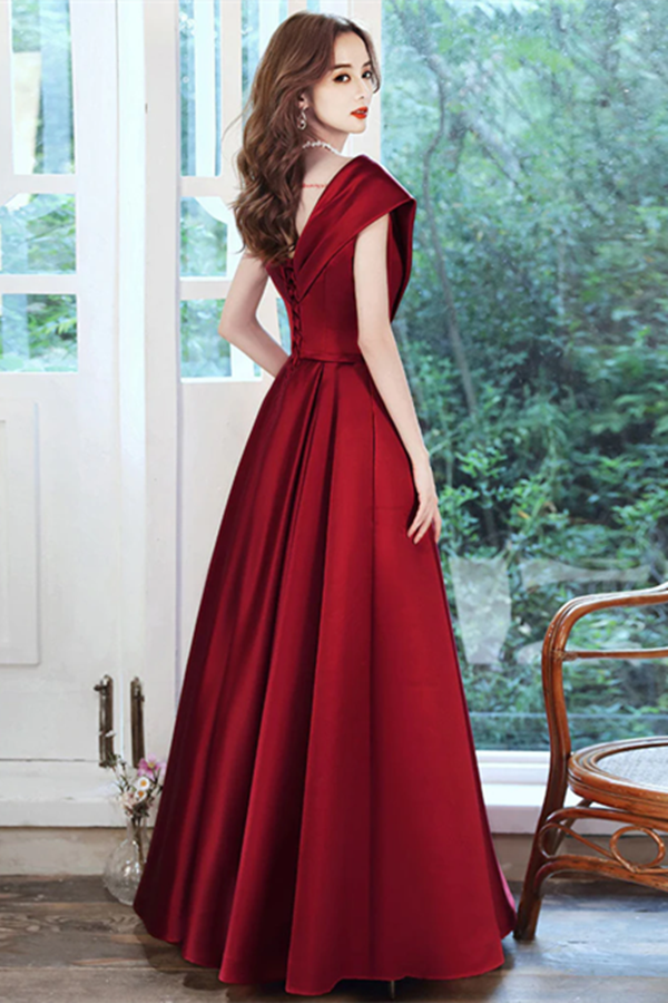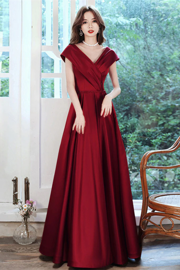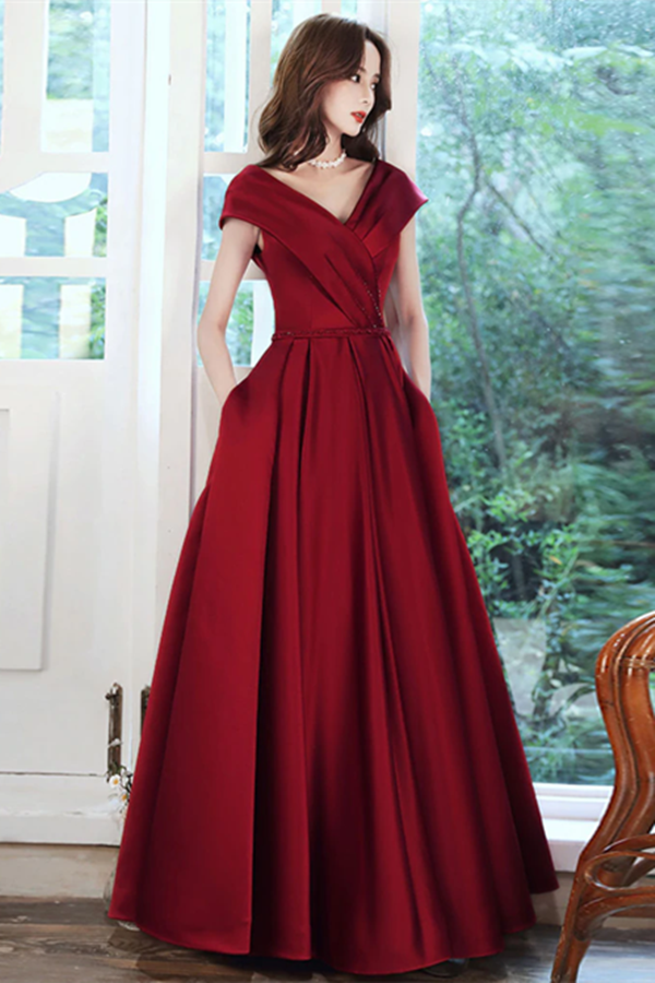 Promfast Cheap A line Burgundy V neck Long Prom Dress Simple Evening Dress PFP2237