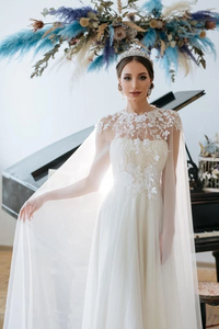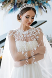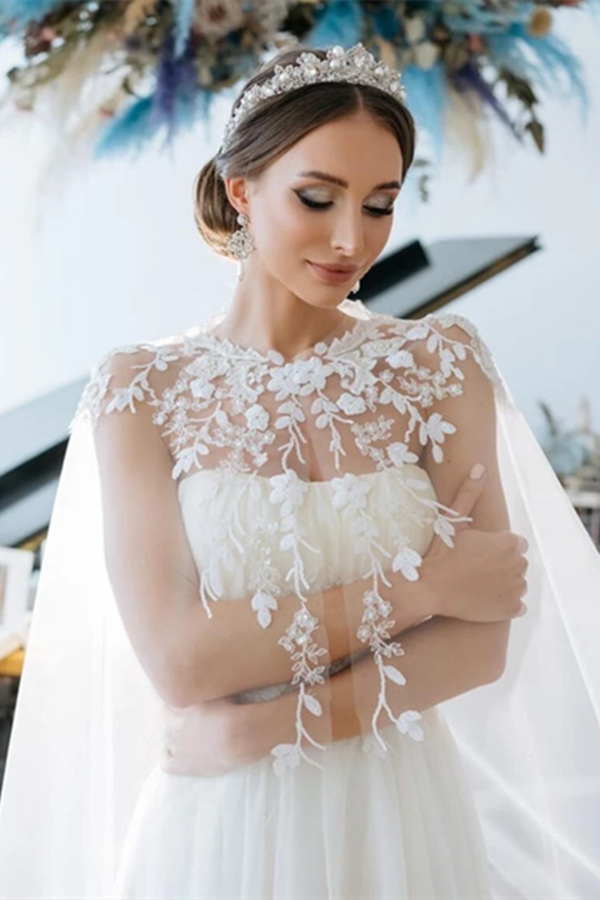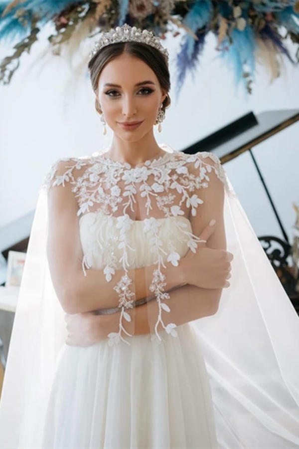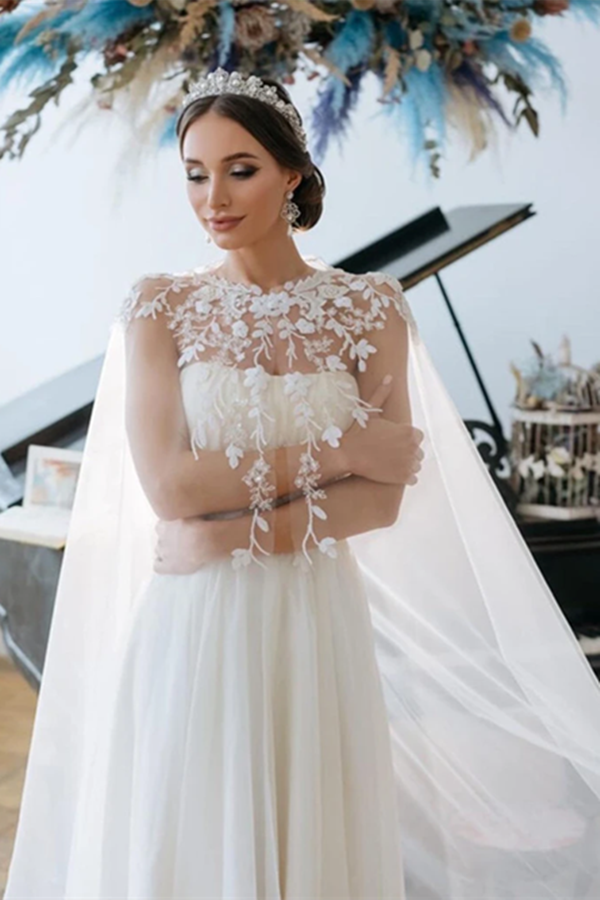Promfast Chic A line Ivory Tulle Applique Court Train Rustic Wedding Dress PFW0561