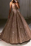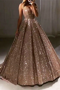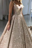 Promfast Chic A line V neck Long Sparkly Gold Prom Dresses Evening Dress PFP2175