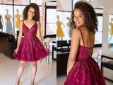 Promfast Cute V Neck Burgundy Appliques Short Prom Dress, Maroon Lace Formal Graduation Homecoming Dress PFH0338