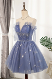 Promfast Flowy Cute A line Blue Homecoming Dresses Short Beading Prom Dress PFH0329