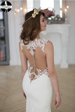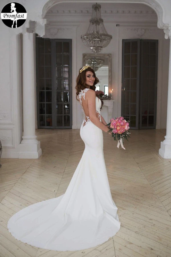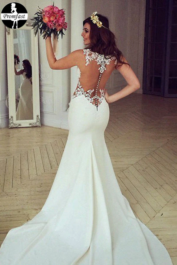 Promfast Lace Stunning Mermaid Sleeveless Wedding Dress Zipper Button PFW0480