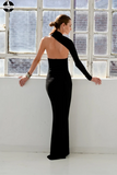 Promfast Long Mermaid Chic One Shoulder Black Prom Dresses Evening Dress Sale PFP1949