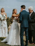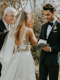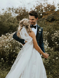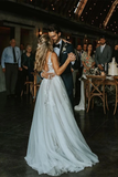 Promfast Marvelous V-neck A-line Wedding Dresses Appliques Tulle Bridal Gowns PFW0465