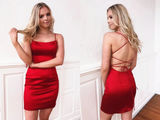 Promfast Mermaid Backless Red Satin Short Homecoming Prom Dress, Mermaid Red Formal Graduation Evening Dress PFP2059