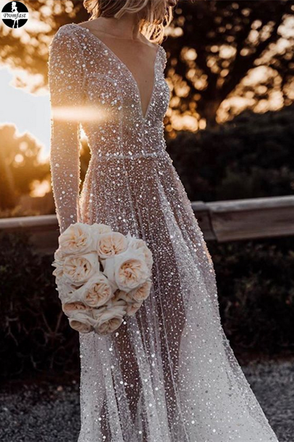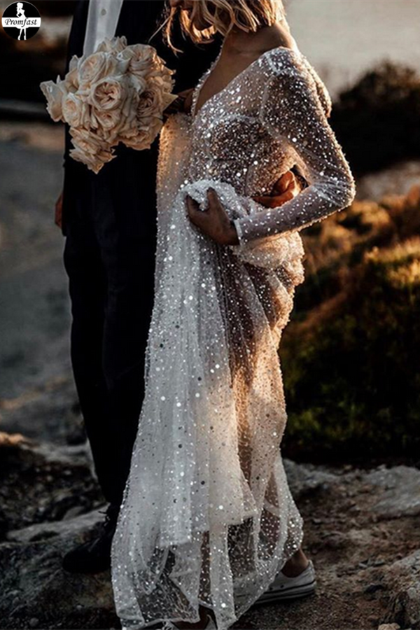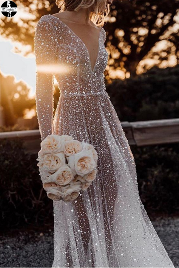 Promfast New 2021 Collection of Sparkle Wedding Dress for Sale, Cheap Wedding Dress Online PFW0506