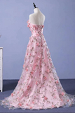 Promfast Pink Flower Appliques Strapless A line Long Prom Dresses, Evening Gowns PFP2294