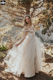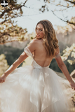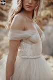 Promfast Shimmering Decorate Champagne Shades Jeweled Belt Tulle Rustic Wedding Dress Ferya Gown PFW0515