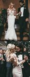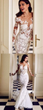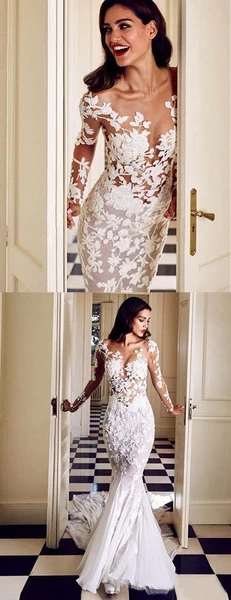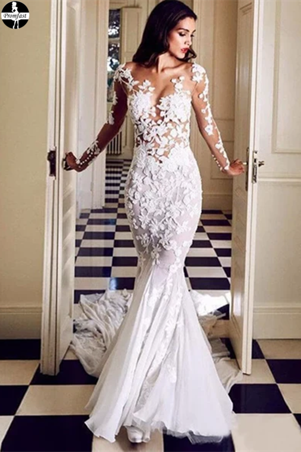 Promfast Trumpet/Mermaid Long Sleeve Lace Rustic Wedding Dresses With Applique PFW0527