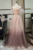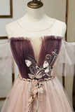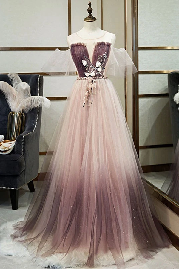 Promfast Unique A Line Tulle Applique Long Prom Dress Formal Evening Dress PFP2142