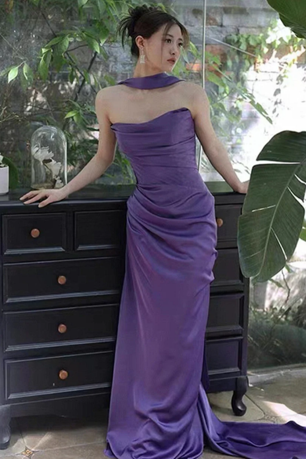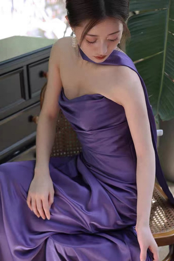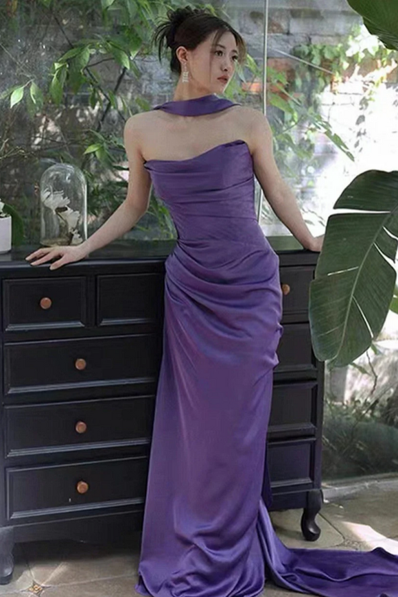 Purple Satin Long Evening Dress Prom Dress, Purple Formal Dress PFP2686