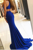 Royal Blue Mermaid Front Slit Prom Dress,Sleeveless Formal Sexy Split Long Evening Dress PFP0844