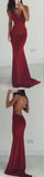 Sexy Burgundy Mermaid Long Spaghetti Straps Prom Dresses PFP0174